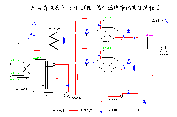 在生產(chǎn)過程中,烘爐內(nèi)油漆蒸發(fā)產(chǎn)生的廢氣經(jīng)收集匯總,并在催化前預(yù)熱到400℃,然后通過浸鈀蜂窩狀陶瓷體催化劑進(jìn)行催化燃燒。催化燃燒后生成的高溫?zé)崮軞饬鳎蟛糠譄崮芙?jīng)循環(huán)風(fēng)機均勻地送入爐膛進(jìn)行熱能重復(fù)